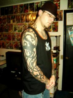 He was born and raised in Upland, California and later moved to Kennewick, Washington, where he began tattooing. He has a certificate in Computer Graphics and Illustration from Chaffey Community College and is currently working towards an Associates Degree in the same field. He has also spent 2 years in the Marine Corp.